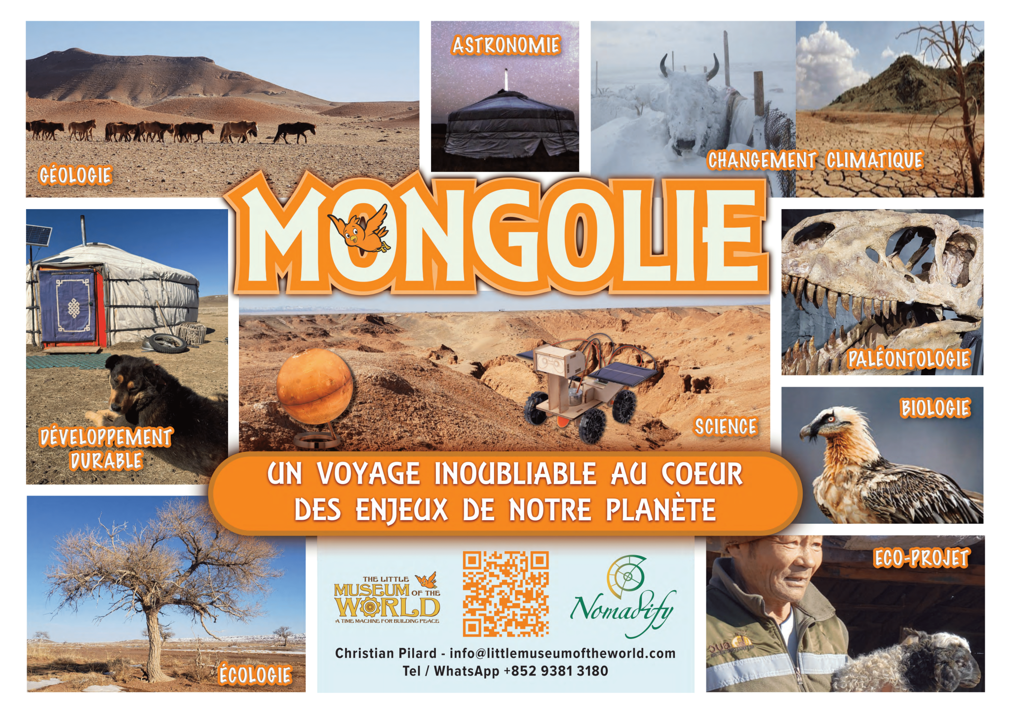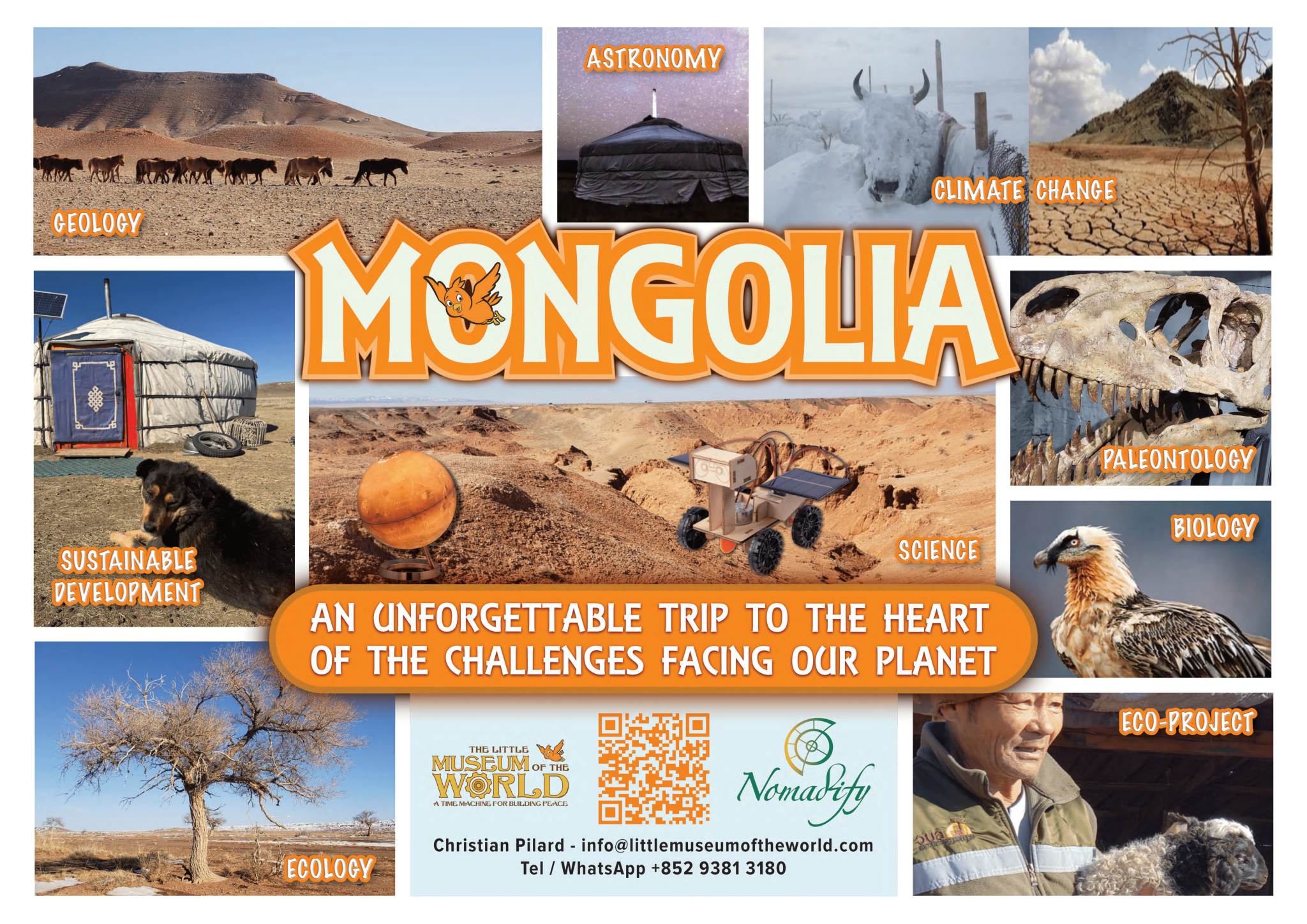 Discover the special connection of Mongolians with their land, meet herders, enjoy paleontology in one of the most fascinating dinosaur countries in the world, participate in a cool Martian experience, learn about astronomy, local biodiversity, and find out why Mongolia is at the center of climate change and sustainable development.